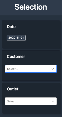 the select the date for the report, the customer and outlet. Clicking outside of this box will activate the report. You can also select yesterdays report or todays report in the top right.