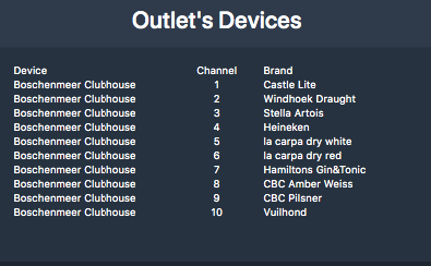 This is a list of the devices or taps associated with this outlet. Clicking the individual devices will update their location on the device location window