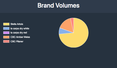 This pie chart shows the breakdown of volumes for each brand poured that day. Clicking each segment on the pie will bring up the POS Data report for that brand.